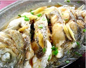 鱼的营养丰富,食之味美,故人们普遍爱吃鱼。但鱼的种类繁多,不同的鱼具有不同的保健功能,并不是人人清楚。 ![]() 鲫鱼,有益气健脾,利水消肿、清热解毒、通络下乳等功能。腹水患者用鲜鲫鱼与赤小豆共煮汤服食有疗效。用鲜活鲫鱼与猪蹄同煨,连汤食用,可治产妇少乳。鲫鱼油有利于心血管功能,还可降低血液粘度,促进血液循环。 清蒸白鲫鱼 原料:白鲫鱼1条(约500克),姜丝、青红椒丝、红葱头片、香菜段、鲜酱油、花生油各适量。 1、白鲫宰杀、洗净、擦干水分,随手抹点盐在鱼身上,然后将鱼放一长盘中。 2、把鱼放入开水锅里蒸熟,滗出汤汁(若汤汁少可保留),放上姜丝、青红椒丝、红葱头片、香菜段;将烧开的花生油趁热浇在鱼身上,随即淋上鲜酱油即可。 ![]() 鲤鱼,有健脾开胃、利尿消肿、止咳平喘、安胎通乳、清热解毒等功能。鲤鱼与冬瓜、葱白煮汤服食,治肾炎水肿。大鲤鱼留鳞去肠杂煨熟分服之,治黄疸。用活鲤鱼、猪蹄煲汤服食治孕妇少乳。鲤鱼与川贝末少许煮汤服用,治咳嗽气喘。 酸菜鱼的做法 【特点】 鲜嫩爽口,开胃健脾,醒酒提神,汤美适口。 【原料】 主料 鲤鱼1条(1000克左右),陈年泡青酸菜250克。辅料 鸡蛋清1个,混合油40克,汤1250克,精盐4克,味精3克,胡椒面4克,料酒15克,泡辣椒末25克,花椒 10粒,姜片3克,蒜瓣7克。 【制作过程】 1、将鲤鱼去鳞、鱼鳃、剖腹、去内脏洗净,用刀取下两扇鱼肉,把鱼头劈开,钱骨制成块。泡青酸菜洗后切段。 2、将炒锅置火上,放少许油烧热,下入花椒料、姜片、蒜瓣炸出香味后,倒入泡青酸菜煸炒出味,加汤烧沸,下鱼头、鱼骨,用大火熬煮。撇去汤面浮沫,滴入料酒去腥。再加入精盐、胡相通面备用。 3、将鱼肉斜刀片成百姓0.3厘米的连刀鱼片,加入精盐、料酒、味精、鸡蛋清拌匀,使鱼片均匀地裹上一层蛋浆。 4、将锅内汤汁熬出味后,把鱼片抖散入锅。用另一锅入油烧热,把泡癞椒末炒出味后,倒入汤锅内煮1至2分钟。待鱼片断生至熟,加入味精,倒入汤盆子中即成。 ![]() 干烧鱼 主料活鲤鱼(1000克)1尾。 辅料细面条250克,甜酒酿75克,香葱末50克,细姜末15克,豆瓣酱15克,绍酒15克,米醋3克,泡辣椒未5克,酱油10克,精制盐少许,白糖5克,味精2克,水淀粉20克,精制油300克(耗15克)。 制法 ①将鱼去鳞、鳃,剖腹挖去内脏,取出鱼子与鱼一起洗干净,抹干水,将鱼子仍塞入鱼肚内,两面鱼背肉锲一字刀纹。 ②将面条投入沸水锅里煮熟捞出,用凉水;中冷,分放10只味碟里备用。 ③炒锅放中火上,放油150克烧热,将碟内面条扣入热油里煎黄一面,取去料碟,将面条翻身再煎黄另一面倒出,沥去油备用。 ④炒锅放旺火上烧热,用油润滑锅壁后,放精制油烧热,将鱼身抹匀酱油待片刻,投入热油里两面煎微黄色,倒出沥去油,锅里再放油100克,下泡辣椒末、豆瓣酱炒出红油,再下甜酒酿、葱姜末炒散后盛出四分之三备用,将鱼回锅加绍酒、酱油、盐、白糖、清热水500克左右烧沸盖上锅盖改用中小火烧6_8分钟至熟,随将备用调料回锅加味精用旺火收汁,淋入水淀粉调粘卤汁,端锅将鱼大翻身后,将调味汁用勺舀上鱼身,滴入米醋脱入大鱼盘里,将10块煎面条放在鱼身两边。 特点成菜鲜红光亮,调味料细致色调和谐,肉质细嫩鲜美,味道浓郁,装形丰富雅致,甜、酸、咸、辣、鲜俱佳,互不相压。 图片 ![]() 鲢鱼,有温中益气、暖胃、润肌肤等功能,是温中补气养生食品。 砂锅鱼头 去鳃花鲢鱼头1个(约600克);豆腐半斤(切半分厚,一寸见方的片);蕃茄半个(切片);熟猪肚片、熟猪心片、熟猪舌片、红肠片、香菇片、金针菇、黑木耳、青笋片、玉兰片少许 化猪油50克;生姜30克;葱50克(二寸半长的段);蒜片10克;花椒粒5克;白胡椒粉、食盐适量 姜切成两半,用切面在热锅底搽一遍(可防止煎鱼头时鱼皮粘锅)后,用刀侧面把姜拍烂待用 锅内下化猪油烧热后,用花椒粒呛锅(花椒捞出不用),下鱼头中火煎至微黄,下姜、葱、蒜煵出香味 冲入高汤(或滚开水)猛火烧开,倒入砂锅,下肚、心、舌、香菇、木耳、玉兰片烧开转小火炖约3分钟,加盐,下豆腐、青笋、红肠、金针菇,汤开后加入蕃茄片、胡椒粉略翻动起锅(不要加味精,以免影响鱼的鲜味) 图片 ![]() 粉皮鱼头 主料:花鲢鱼头1只(约重750克),粉皮5张 调料:熟猪油50克、绍酒30克、酱油40克、白糖2克、香糟15克、葱段5克、姜片5克 制作方法: 1、在鱼头的两面各划几刀,使其容易入味。 2、香糟放入碗中,加入绍酒泡开,然后用纱布滤出香糟备用。 3、炒锅上火,放入熟猪油烧至五成热,把抹过酱油的鱼头,沿锅边放入锅中煎至两面成淡黄色,放入葱段、姜片、绍酒、酱油、白糖、清水1000克,以水正好淹没鱼头为度,盖上盖,用旺火烧沸,看到鱼眼睛变白色后,倒入粉皮,再烧上2分钟,将香糟卤放进去,烧一会儿,淋熟猪油起锅,装入汤碗内即成。 图片 ![]() 青鱼,有补气养胃、化湿利水、祛风除烦等功能。其所含锌硒等微量元素有助于抗癌。 精盐6克,白糖150克,番茄酱100克,香醋7.5克,葱末10克,蒜末10克,干淀粉80克,猪肉汤75克,水淀粉40克,芝麻油10克,熟猪油1500克(约耗200克)。 (1)将鱼皮朝下,用刀斜片至鱼皮,每片4刀切断鱼皮,共切成10块,再将鱼块直割到鱼皮(刀距约0.7厘米,不能破皮),粘上干淀粉,抖去余粉,成菊花鱼生坯。将醋、白糖、精盐、番茄酱、猪肉汤、水淀粉一起放入碗中,搅和成调味料。 (2)将锅置旺火上烧热,舀入熟猪油,烧至七成热时,将菊花鱼生